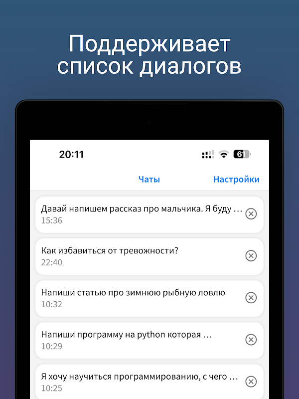 تعلم البرمجة واللغة الإنجليزية والفيزياء والرياضيات والعلوم الأخرى بمساعدة روبوت ChatBot Turbo. قم بتعيين السياق في الرسالة الأولى - وسيقوم الروبوت بتغيير نمط سلوكه.