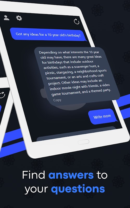 فلماذا تنتظر؟ قم بتنزيل تطبيق chatbot الآن واختبر المستوى التالي من المحادثة الذكية. حان الوقت للدردشة كما لم يحدث من قبل! "
