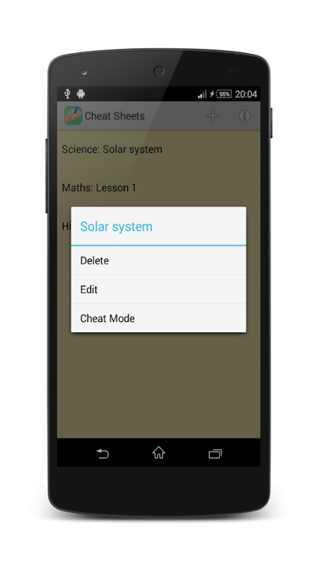 ✔ دخول في وضع الغش سيظهر النص أو الصور من الغش ورقة بك في كامل الشاشة.