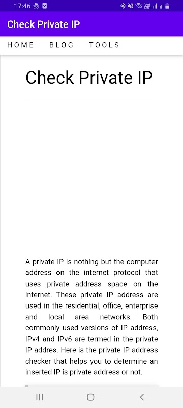 Check whether the inserted IP address is a private IP or not with this help of this app.