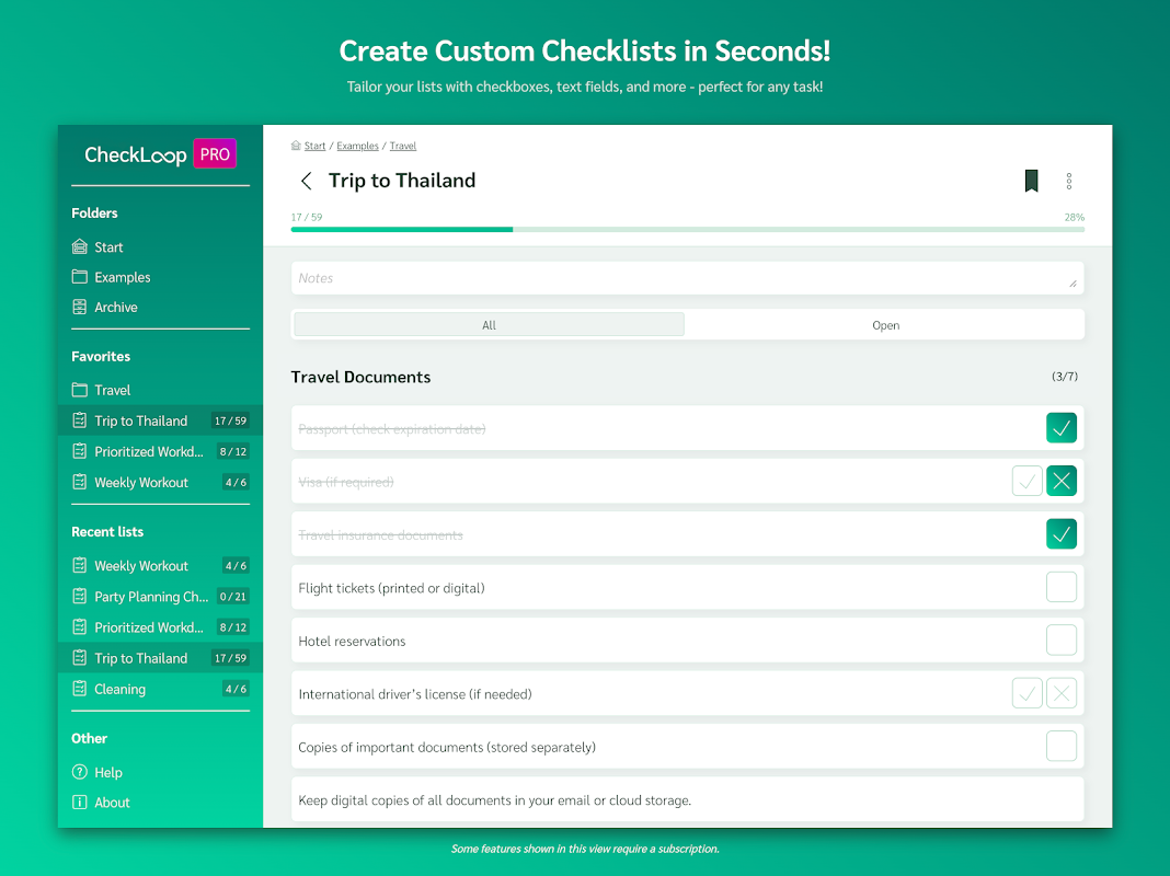 أنشئ قوالب مرة واحدة، وأنشئ قوائم تحقق غير محدودة، وحافظ على مزامنة كل شيء - مثالي للعمل والمهام الشخصية.