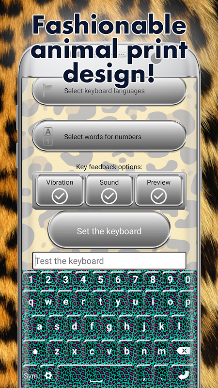 تصبح ملكة الأناقة وتظهر مدى قوة بك "المغير لوحة المفاتيح" هو. إظهار الجانب البري الخاص بك! اختر مخصص "الخطوط لوحة المفاتيح"، إدراج الرموز التعبيرية بارد والمشاعر، وتتمتع الرسائل النصية. إذا كنت مثل "وردي الفهد لوحة المفاتيح"، لا مشكلة! لدينا ذلك أيضا. لا تنتظر أكثر من ذلك! تحميل ⧨ الفهد لوحة المفاتيح ⧩ تطبيق مجانا والتمتع العلامة التجارية الجديدة، وتطبيق الطباعة البرية الخاصة بك!