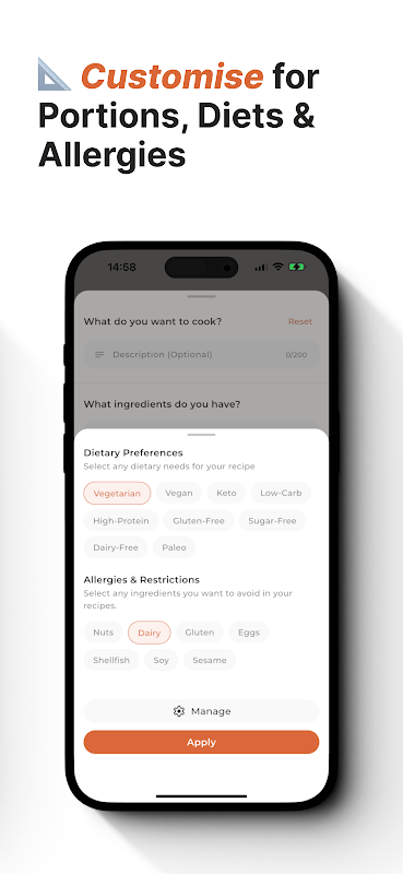 • إنشاء وصفات شخصية (جديد) - حدّد الأنظمة الغذائية، والحساسيات، والمأكولات، والمغذيات الكبرى، وأحجام الحصص؛ تُكيّف الوصفات مع احتياجاتك.