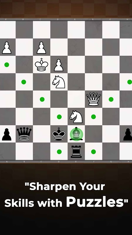 ♟ الألغاز: شحذ مهاراتك التكتيكية مع مجموعة ضخمة من ألغاز الشطرنج. حل سيناريوهات كش مات، وتحديات نهاية اللعبة، والمزيد لتحسين أدائك.