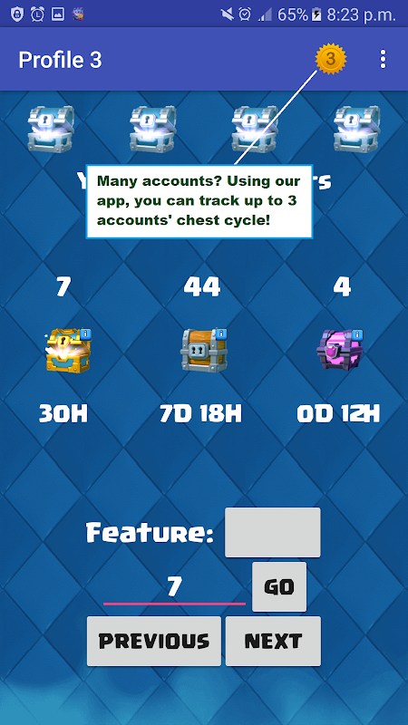 1) Able see your next four upcoming chests for Clash Royale.