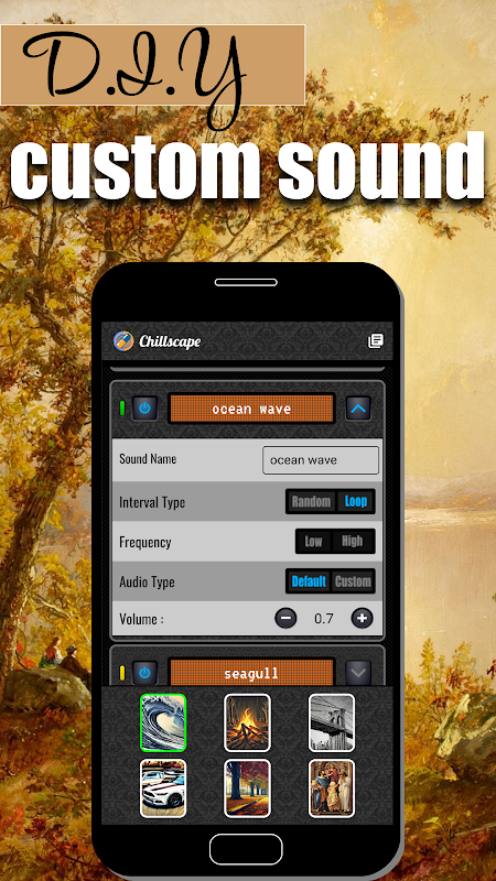 التخصيص: قم بتخصيص المؤثرات الصوتية لكل موضوع عن طريق إضافة مقاطع الصوت الخاصة بك لتشغيلها إما في حلقة أو على فترات زمنية محددة مع الموسيقى الرئيسية.
