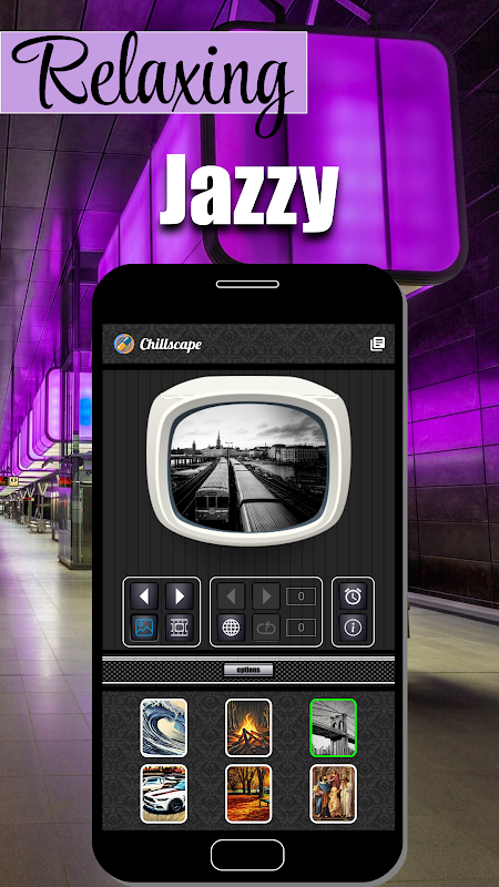مجموعة من موسيقى الجاز المريحة بالإضافة إلى الأصوات الاختيارية المحيطة بالمدينة. (قابلة للتخصيص مع مقاطع الصوت الخاصة)