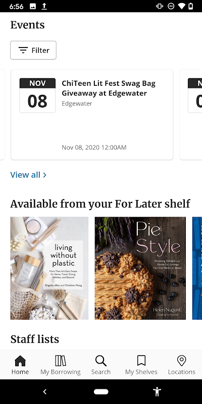 في أي فرع يوجد الكتاب الذي أريده على الرف؟ متى موعد أقراص DVD الخاصة بي؟ يسهّل تطبيق الهاتف المحمول التابع لمكتبة شيكاغو العامة تتبع حسابك والعثور على عناوين جديدة لقراءتها ومشاهدتها أو الاستماع إليها.
