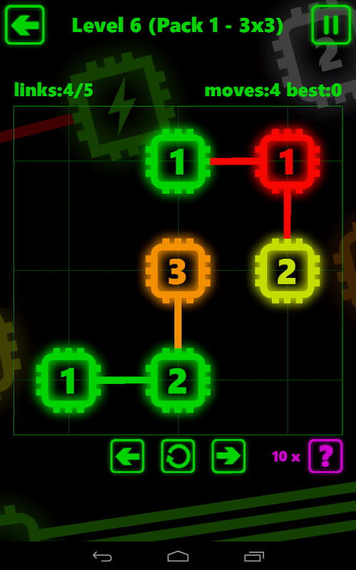 Connect all of the chips to create a circuit and complete each level. All chips must be linked together and each chip must have the required number of connections to other chips.