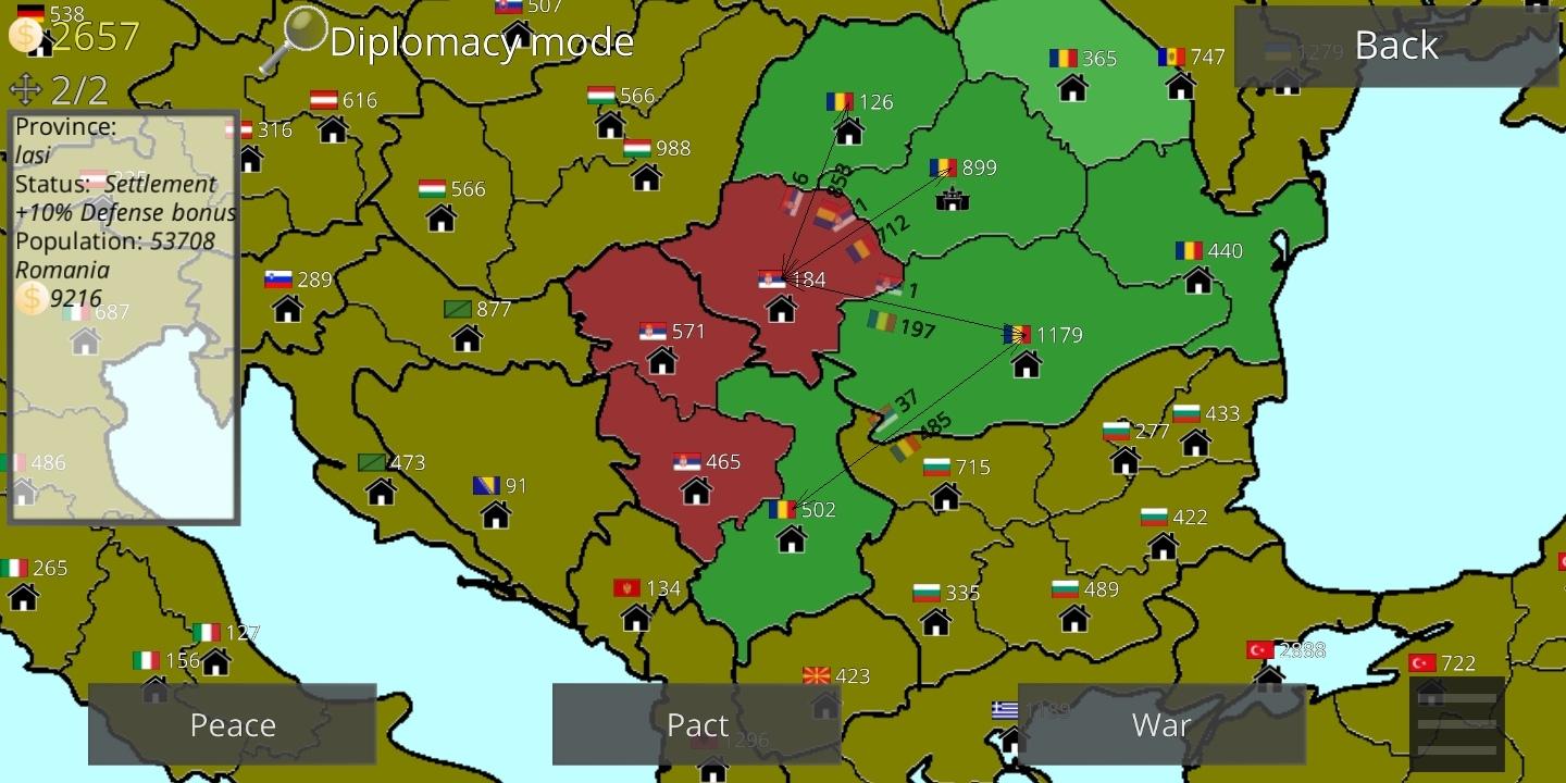 قم باستئجار الجيوش وتحريكها وطردها. إعلان الحرب وصنع السلام وتوقيع اتفاقيات عدم الاعتداء والانضمام إلى التحالفات وتركها. أطلق العنان لحرب بأيدي خاطئة ، أعداء حفرة. يمكن للبلدان أن تقدم لك العديد من الإنذارات المختلفة ، وتتحد ضدك. لكنك ستكون جاهزًا لهذا.