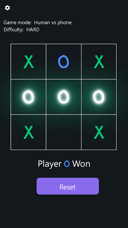 هذه هي لعبة تيك تاك تو الكلاسيكية 3x3. ويستخدم خوارزمية minimax لمشغل AI.