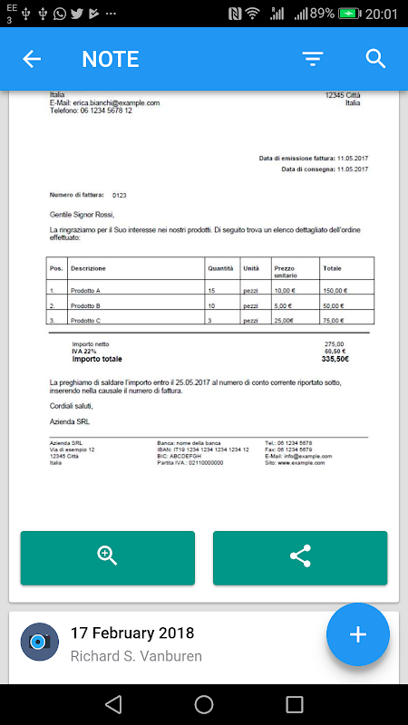 لكل عميل "سجل نشاط" خاص به حيث يمكنك كتابة ملاحظات وأحداث وتذكيرات صغيرة وكل ما قد تحتاج إلى تذكره وتسجيله. يمكنك أيضًا التقاط صورة للمستندات الورقية