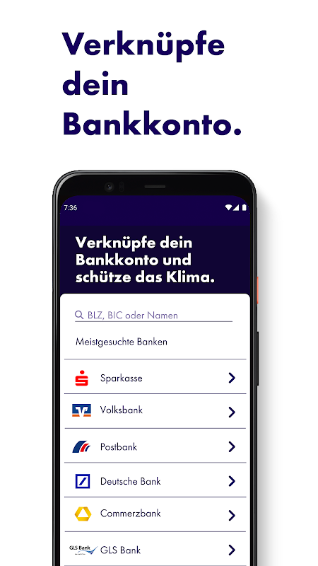 لتقريب مدفوعاتك ، اربط حسابك المصرفي في التطبيق. لا تحتاج إلى حساب جديد أو بطاقة خاصة. نحن قادرون حاليًا على ربط حوالي 95٪ من البنوك الألمانية.