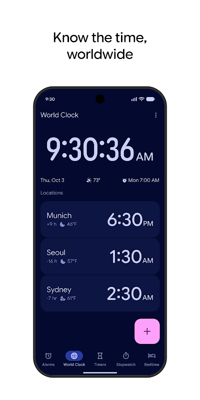 يجمع تطبيق الساعة بين جميع الوظائف التي تحتاج إليها في حزمة واحدة تتميز بالبساطة والجمال.
