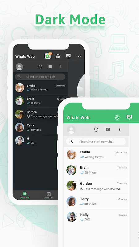 - وظيفة الدردشة المزدوجة: إدارة حسابين متميزين على نفس الجهاز ، مثل الحساب الشخصي والتجاري. تسمح عملية تسجيل الدخول باستخدام رمز الاستجابة السريعة بالتبديل السريع والخالي من المتاعب بين حسابات WA.