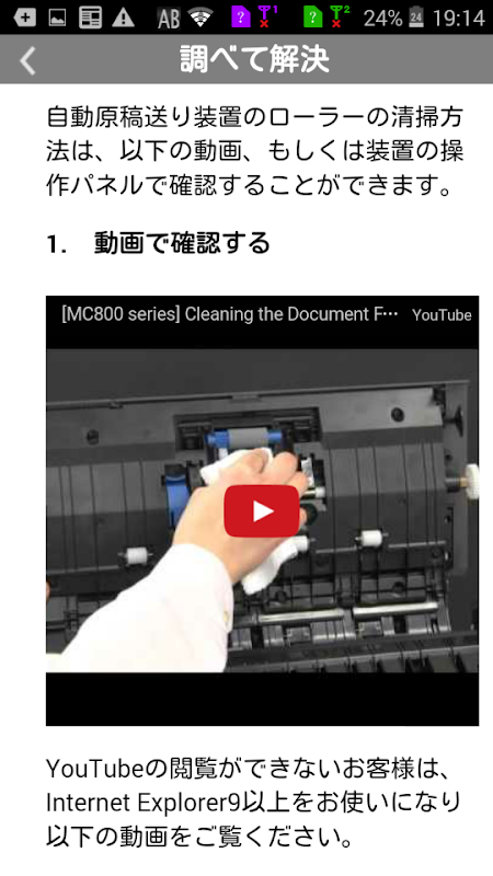 يتم البحث عن حالة الجهاز تلقائيًا في السحابة ، ويتم عرض حالة الخطأ أو التحذير الذي حدث والحل على الهاتف الذكي. يمكنك حل المشكلة أثناء النظر إلى هاتفك الذكي أمام الجهاز.