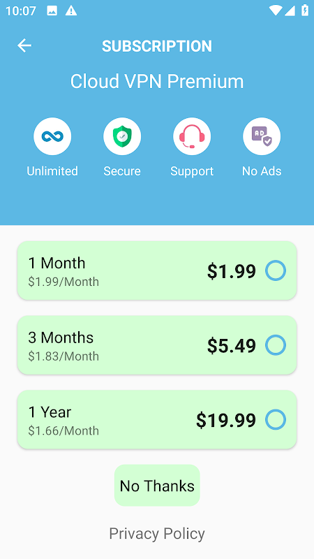بشكل عام ، يعد Cloud VPN تطبيق VPN موثوقًا يقوم بتشفير وإخفاء حركة مرور المستخدمين على الإنترنت وإخفاء أنشطتهم عبر الإنترنت. يوفر تجربة إنترنت آمنة وسريعة من خلال واجهته سهلة الاستخدام وميزة حظر الإعلانات.