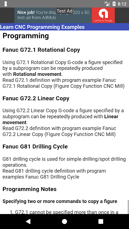 Computer numerical control (CNC) is the automation of machine tools by means of computers executing pre-programmed sequences of machine control commands. This is in contrast to machines that are manually controlled by hand wheels or levers, or mechanically automated by cams alone.This is FREE app will teach you that how to use a CNC Programming. This application is for beginners and intermediate users .This app is useful for those who are starting to learn CNC Programming