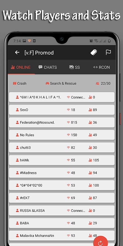 - يعرض حالة اللاعبين عبر الإنترنت والإحصائيات وتفاصيل المباراة لخوادم لعبة معينة