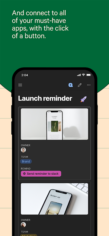 * التطبيقات: باستخدام Coda، يمكن لأي شخص تصميم حل لتوفير الوقت باستخدام صيغة أو زر أو تشغيل تلقائي. واستبدل التطبيقات المتخصصة في مجموعة أدواتك.