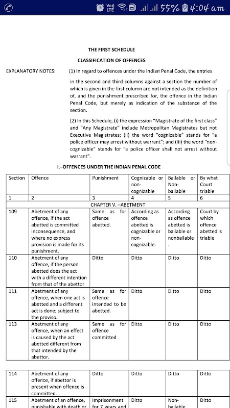 This app provides detailed provisions of Code of Criminal Procedure, Two Schedules and latest Judgements on the the Code of Criminal Procedure. In this mobile app, every efforts were made to see that there may not be any error but inspite of that if any unintentional clerical mistake or error of omission or else taken place, the same will be rectified in the later version. This App is not to provide any legal advice to any one and people interested are requested to refer other sources before reaching any inference. Suggestions are welcome at [email protected]. You can visit at his blog : https://cyberchatterjee.blogspot.com