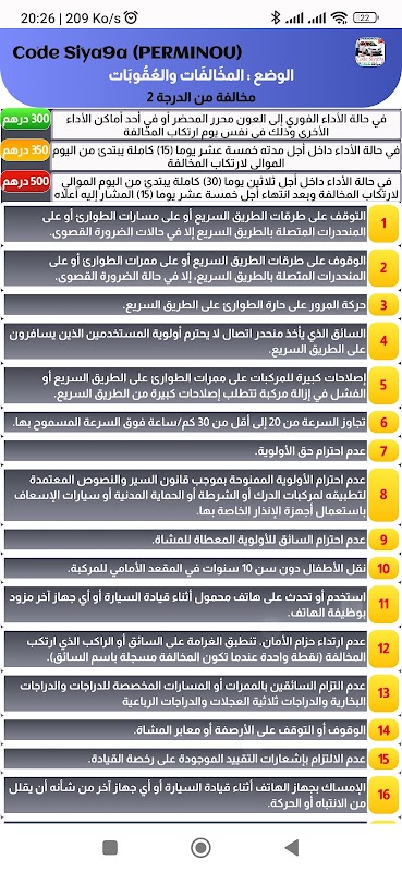 ★ دروس جميع قوانين السير و المخالفات و الغرامات .