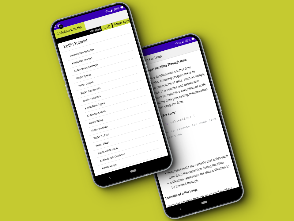 الإصدارات القديمة لـ CodeSnack : Learn Kotlin