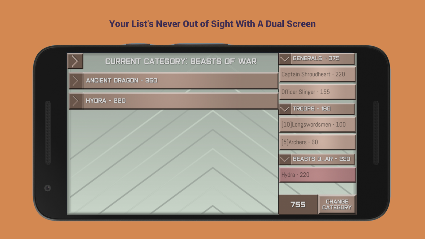 قائد الدستور أسرع وبناء قائمة التطبيق على نحو سلس ل wargamers المنضدة مصغرة.