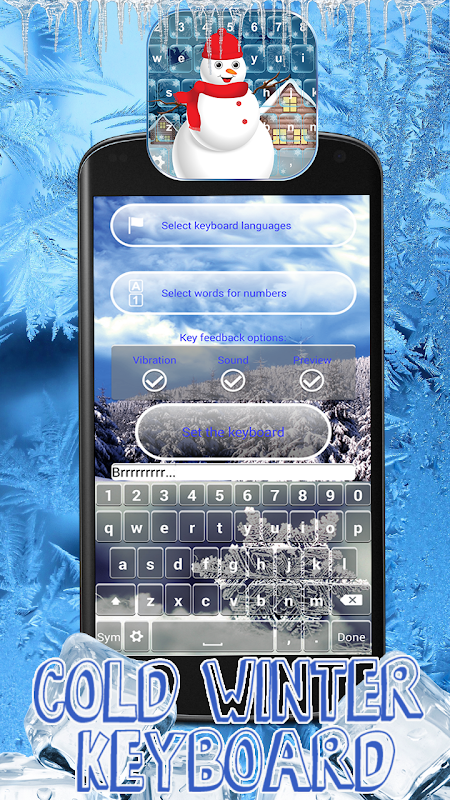 تغيير لوحة مفاتيح الهاتف لوحة المفاتيح مع مواضيع الجليد في فصل الشتاء البارد