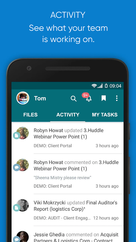 • اللحاق بالركب على أحدث النشاط في مساحات العمل الخاصة بك عن طريق تغذية النشاط.