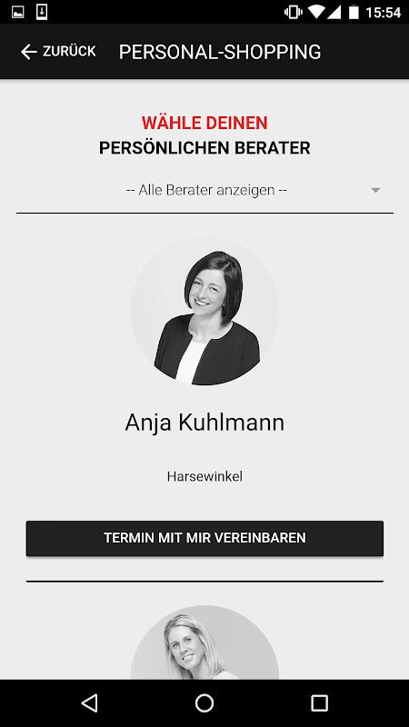 التسوق الشخصي: هنا يمكنك تحديد مستشارا شخصيا للتواريخ المطلوبة.