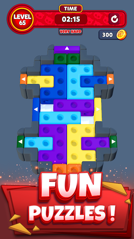 * رسومات جميلة وعناصر تحكم سلسة: استمتع بعالم نابض بالحياة من الكتل الملونة والمؤثرات البصرية المذهلة التي تجعل حل كل لغز متعة بصرية. تضمن عناصر التحكم البسيطة والبديهية تجربة سلسة وممتعة لجميع الأعمار. * اربح مكافآت وافتح مستويات جديدة: اجتز المستويات الصعبة لتربح مكافآت وتفتح ألغازًا جديدة وأكثر تحديًا. كل فوز يقربك من أن تصبح خبيرًا في الألغاز، ورضا التغلب على كل تحدٍّ مليء بالمكعبات لا يُضاهى.