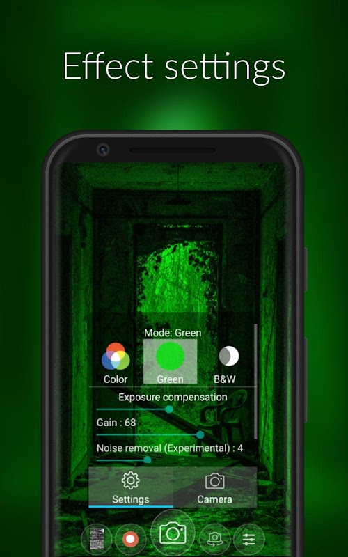 Remember, this night mode camera application does not provide the capabilities of a real night vision device. It just improves the brightness of the camera in the dark and is meant to be used for fun. The final result depends on the camera quality on your phone. The algorithm works well while using high quality phone camera as compare to low quality phone camera.