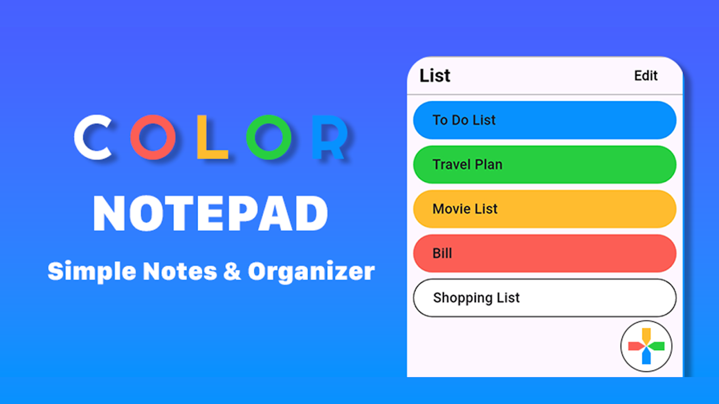 Color Notepad هو الرفيق المثالي لتدوين الملاحظات وتنظيمها بسهولة. بفضل تصميمه البسيط وموضوعاته الملونة، فهو يجعل إدارة ملاحظاتك ممتعة وخالية من التوتر.