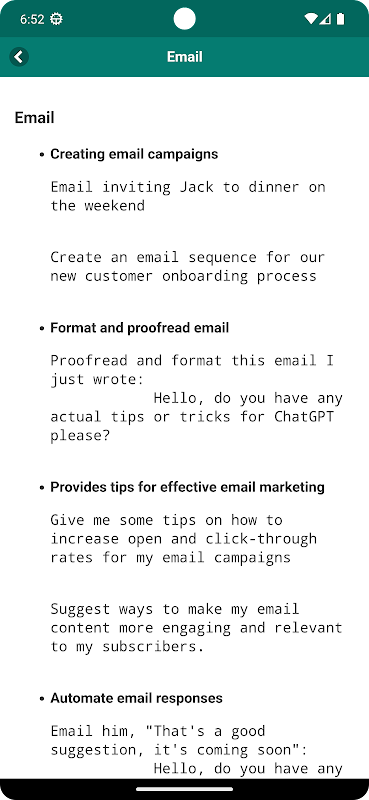 اكتشف الإمكانات اللامحدودة للذكاء الاصطناعي وتعلم كيفية استخدام الذكاء الاصطناعي بشكل فعال. في هذا التطبيق ، ستحصل على قائمة موجه أوامر شاملة لـ ChatGPT لاستخداماتك اليومية. سواء كنت طالبًا أو مدرسًا أو رائد أعمال أو مستقلاً أو مبتدئًا أو مشروعًا تجاريًا صغيرًا أو مسوقًا رقميًا أو صانع محتوى ، سيساعدك هذا التطبيق على زيادة مهارتك في الهندسة السريعة.