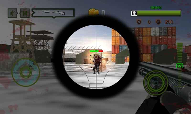 Modern and advanced weapons to kill enemies.5 Different types rang and shots power or weapon are provided to kill the enemies and make ease to clear the mission.Each weapon has different rang and number of shots at one time.Realistic and thrill weapon sounds.Real weapons animation and firing effects.