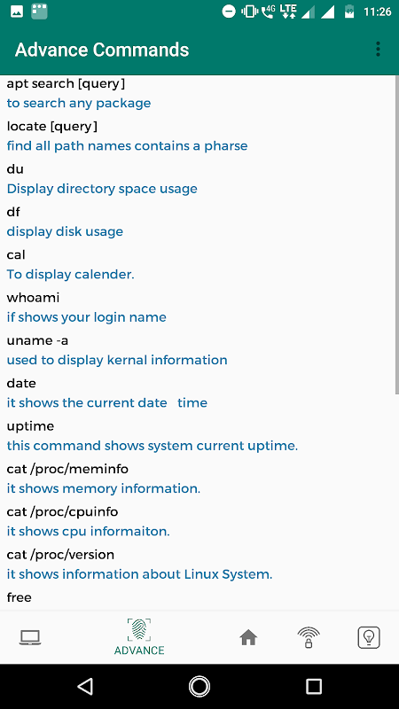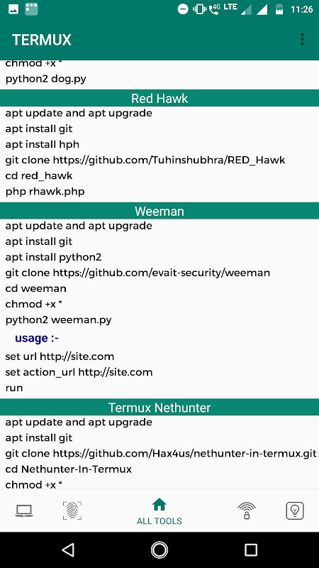 بعض القيادة هي متاحة للTermux المستخدمين.