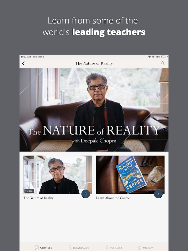 تساعد دوراتنا الأشخاص على جلب أفضل ما لديهم إلى العالم: تمتع بسهولة بممارسة اليوجا مع Adriene Mishler ، واستكشف طبيعة الواقع مع Deepak Chopra ، وتحكم في الرعاية الصحية الخاصة بك مع Dr. Mark Hyman ، وتعلم كيفية تحسين علاقاتك مع Marianne Williamson ، التخلص من التحيز العنصري الضمني مع إيفلين كارتر ، وأكثر من ذلك بكثير.
