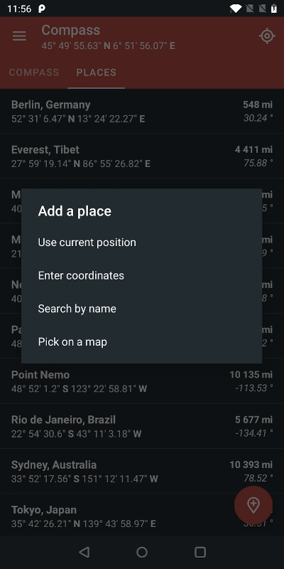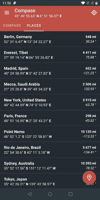 استخدام الهاتف في أي مكان، أي عندما، للتحقق من صحيح الشمال والجنوب أو الشرق أو الغرب.