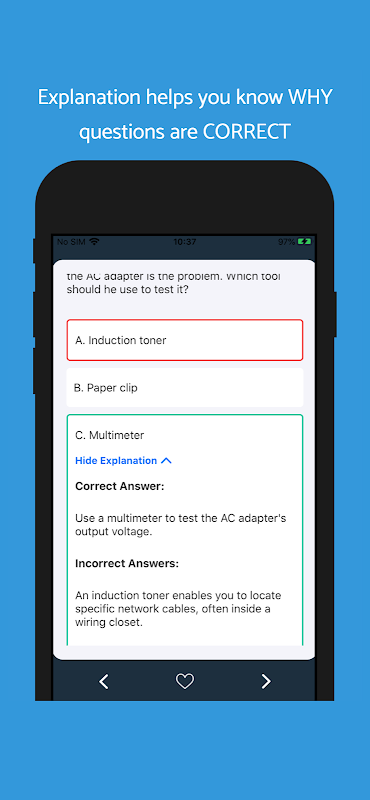5. ما يقرب من 100% من الأسئلة مليئة بالتفسيرات المباشرة. سوف تعرف لماذا هو صحيح أو خطأ. لا مزيد من الخلط.