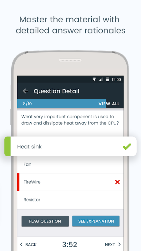 يعد تطبيق CompTIA A + Practice في Pocket Prep محاكيًا قويًا للامتحانات يتيح لك إنشاء اختبارات ممارسة مخصصة مع شرح تفصيلي للإجابة لكل سؤال. عرض النتائج الخاصة بك وسجل الامتحان مع عدد قليل من الصنابير. ادرس في أي مكان وفي أي وقت دون اتصال بالإنترنت.