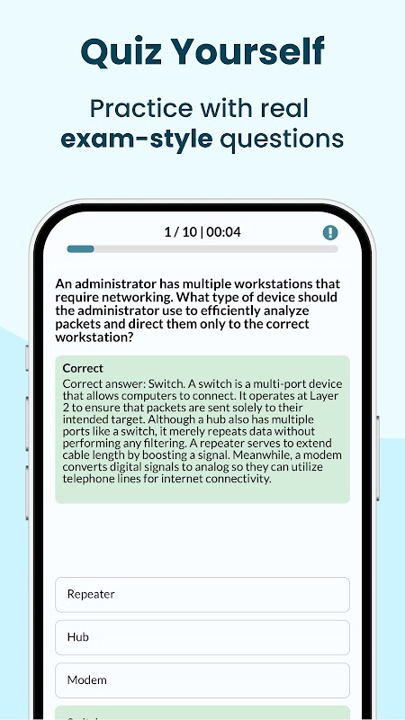 هذا التطبيق أداة تعليمية مُستقلة مُطورة لمساعدة المستخدمين على الاستعداد لامتحانات شهادة CompTIA. هذا الموقع غير تابع لجمعية صناعة تكنولوجيا الحوسبة (CompTIA) ولا معتمد منها ولا برعاية منها بأي شكل من الأشكال.