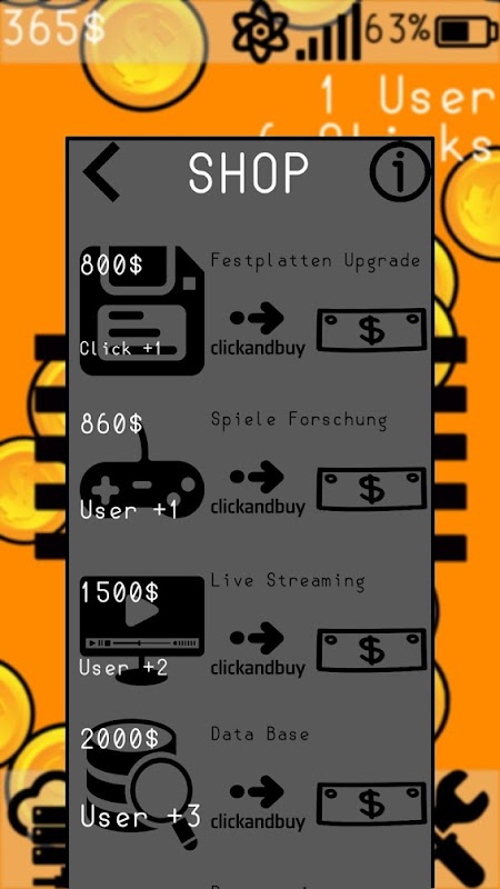 في لعبة Computer Clicker، يمكنك بناء إمبراطورية خاصة بك من الخوادم والتكنولوجيا الفائقة. ما عليك سوى النقر على الشاشة لكسب المال، ثم استثماره في الترقيات والشبكات الاجتماعية وخدمات البث. كلما استثمرت أكثر، كلما نمو عملك بشكل أسرع!