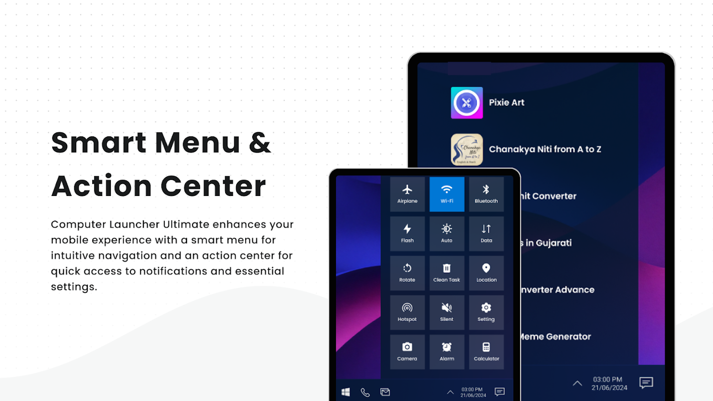 ارفع تجربة هاتفك المحمول إلى آفاق جديدة. قم بتنزيل Computer Launcher Ultimate الآن وادخل إلى عالم يقوم فيه هاتفك بأكثر من مجرد التطبيقات. إنه يعمل مثل الكمبيوتر.