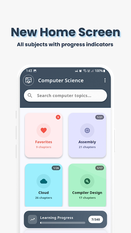 من مفاهيم البرمجة الأساسية إلى المواضيع المتقدمة مثل التعلم الآلي، وبروتوكولات الشبكات، وتحسين قواعد البيانات - يغطي هذا التطبيق كل ما تحتاجه لرحلة علوم الحاسوب.