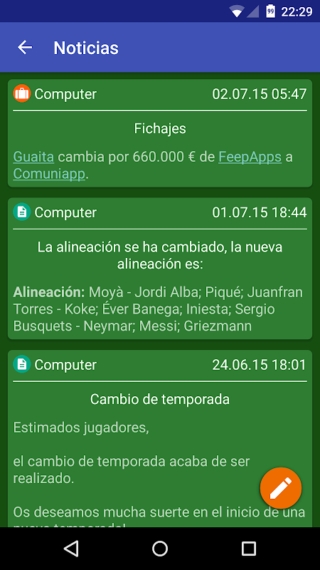 من التطبيق يمكنك الوصول إلى جميع محتويات لإجراء تغييرات على تشكيلة الفريق أو المزايدة على أي لاعب مثير للاهتمام الذي ذهب للبيع. وكل هذا مجانا.