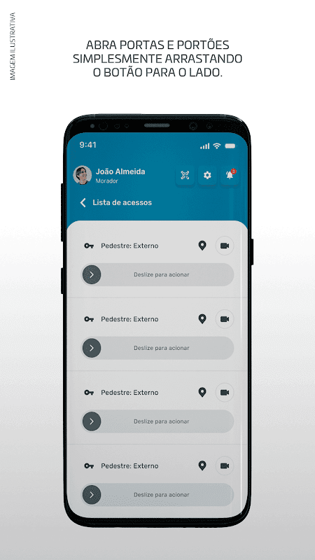 إمكانية إقامة فعالية للمقيم وإرسال الدعوات لجميع ضيوفه. عندما يدخل أحد ضيوفك الشقة ، فإنهم يتلقون إشعارًا فوريًا في التطبيق.