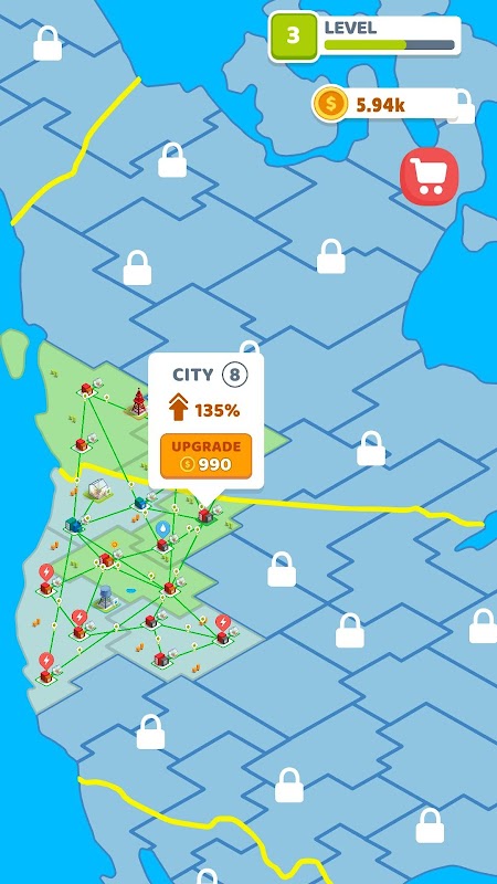 Connect Map هي لعبة جديدة للغاية ومناسبة للجميع. في هذه اللعبة، تحتاج إلى التحكم في الموارد المختلفة وتوصيلها بجميع المدن الموجودة على الخريطة.