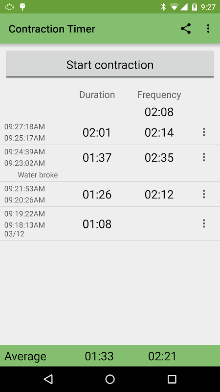 تتبع الانقباضات الخاصة بك وتلقائيا حساب مدة وتردد