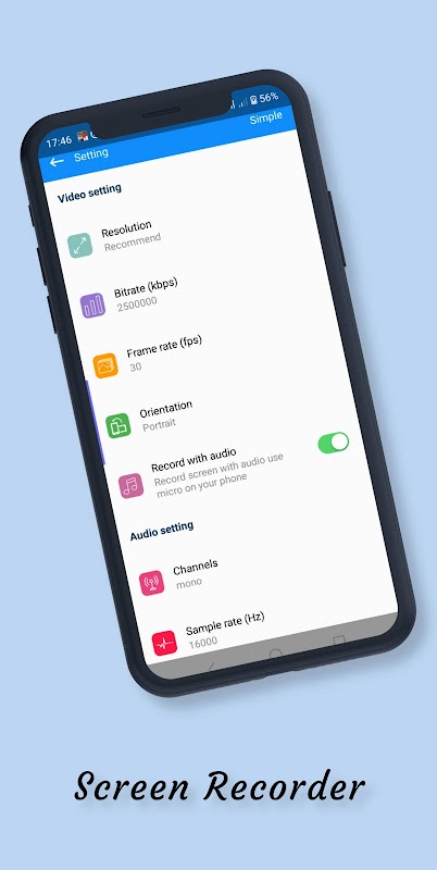 - تسجيل الشاشة: سجل أي إجراء في هاتفك. (دعم android 5.0 أعلاه فقط)